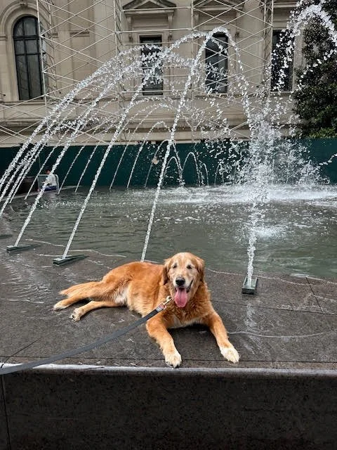 This darling Golden retriever was cooling himself in one of the water features outside the Met. Of course every one passing by was taking pictures!!!!